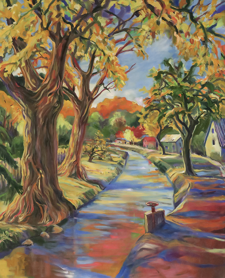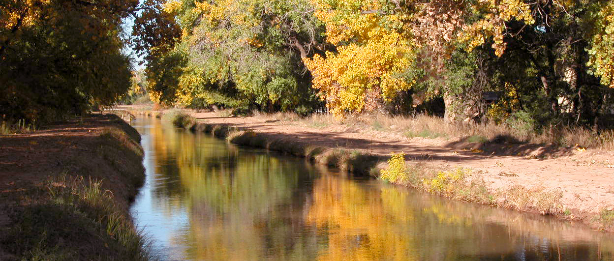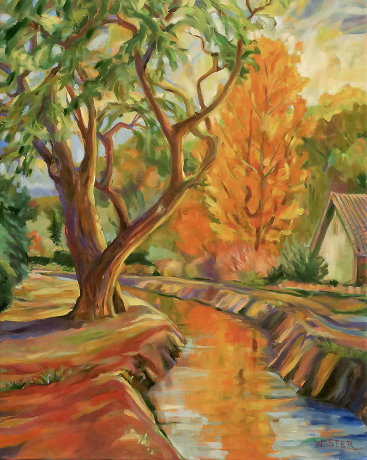 The acequias (irrigation canals) that run throughout Albuquerque’s North Valley are a great artistic resource and refuge. Their dense foliage, with brilliant fall colors and surprising reflections along the twists and turns of the ditches, are like cool oases within the city.