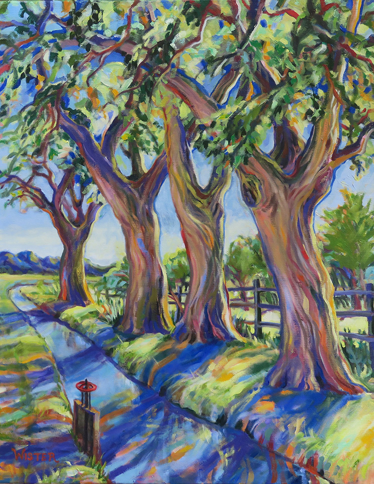 I enjoy the quality of light and the dappled shade under the trees and try to capture some of that peaceful feeling in my work.